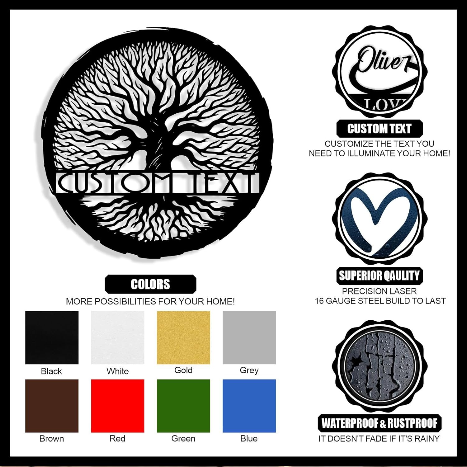 • Personalized & Name Customizable -- Click "CUSTOMIZE NOW" and enter the name or text. Our personalized Tree of Life Metal Sign designs make it unique, beautiful and elegant to create a perfect personalized family name sign for you. This custom last name sign is customized with your last name, first names and established date, will look beautiful indoor and outdoor any home.