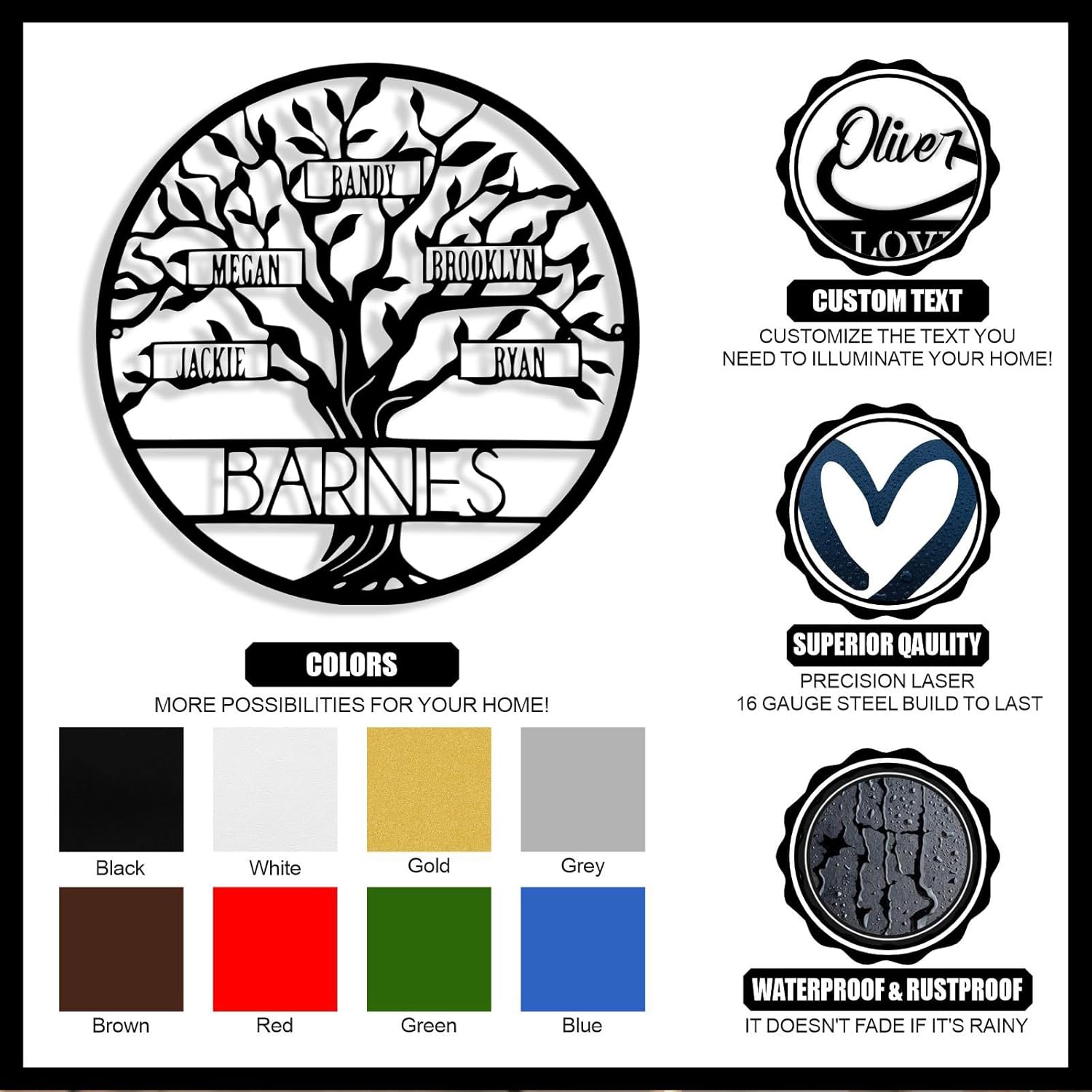 • Personalized & Name Customizable -- Click "CUSTOMIZE NOW" and enter the name or text. Our personalized Tree of Life Metal Sign designs make it unique, beautiful and elegant to create a perfect personalized family name sign for you. This custom last name sign is customized with your last name, first names and established date, will look beautiful indoor and outdoor any home.