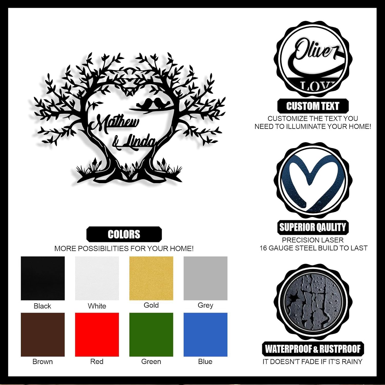 • Personalized & Name Customizable -- Click "CUSTOMIZE NOW" and enter the name or text. Our personalized Tree of Life Metal Sign designs make it unique, beautiful and elegant to create a perfect personalized family name sign for you. This custom last name sign is customized with your last name, first names and established date, will look beautiful indoor and outdoor any home.