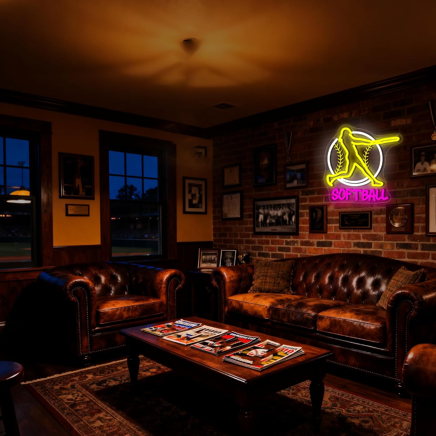 • Unique Design: Softball neon sign showcases a dynamic softball player silhouette with a bat, set against a softball graphic. The bold softball lettering and sporty elements create an energetic and athletic look. Softball enthusiasts and those into sporty decor will be instantly drawn to it. It’s ideal as softball wall art to bring a lively, competitive softball vibe to spaces like sports bars, softball clubs.