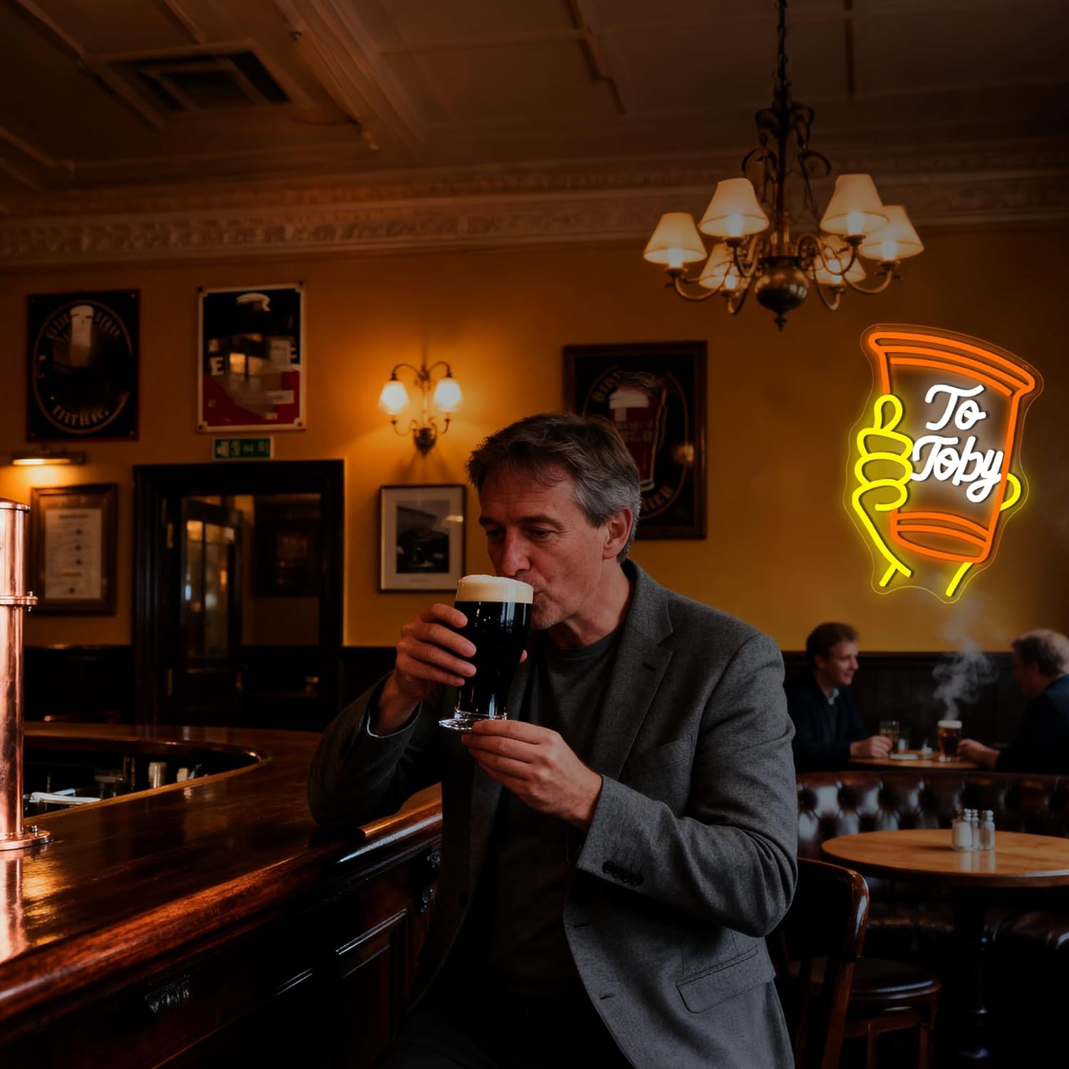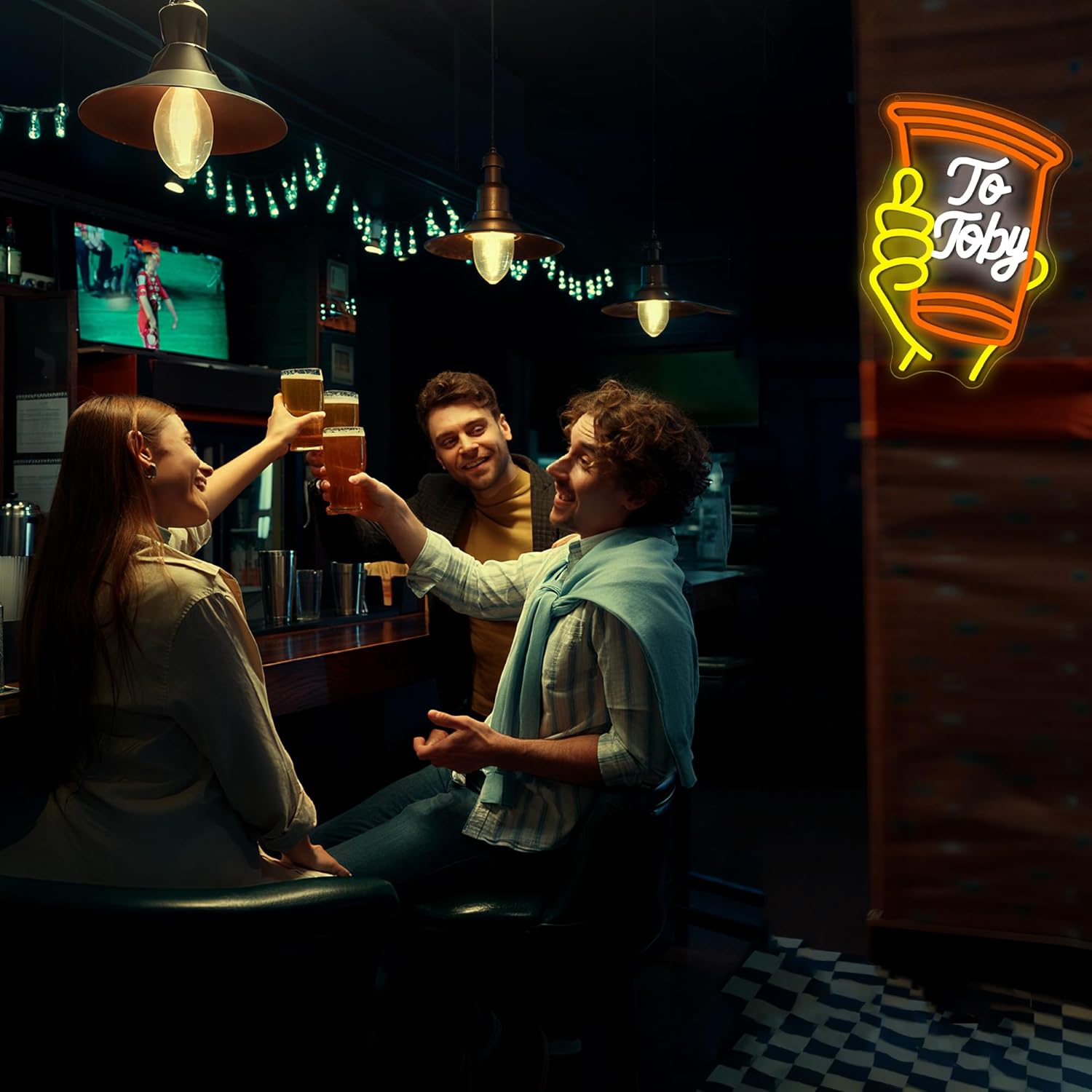 • Unique Design: To toby neon sign features a hand holding a cup with the words to toby on it. The simple yet distinctive design, with bright colors outlining the hand and cup, gives off a warm and personalized feel. People who like cheers or country music party will be instantly drawn to it. It’s ideal as a country music wall art.