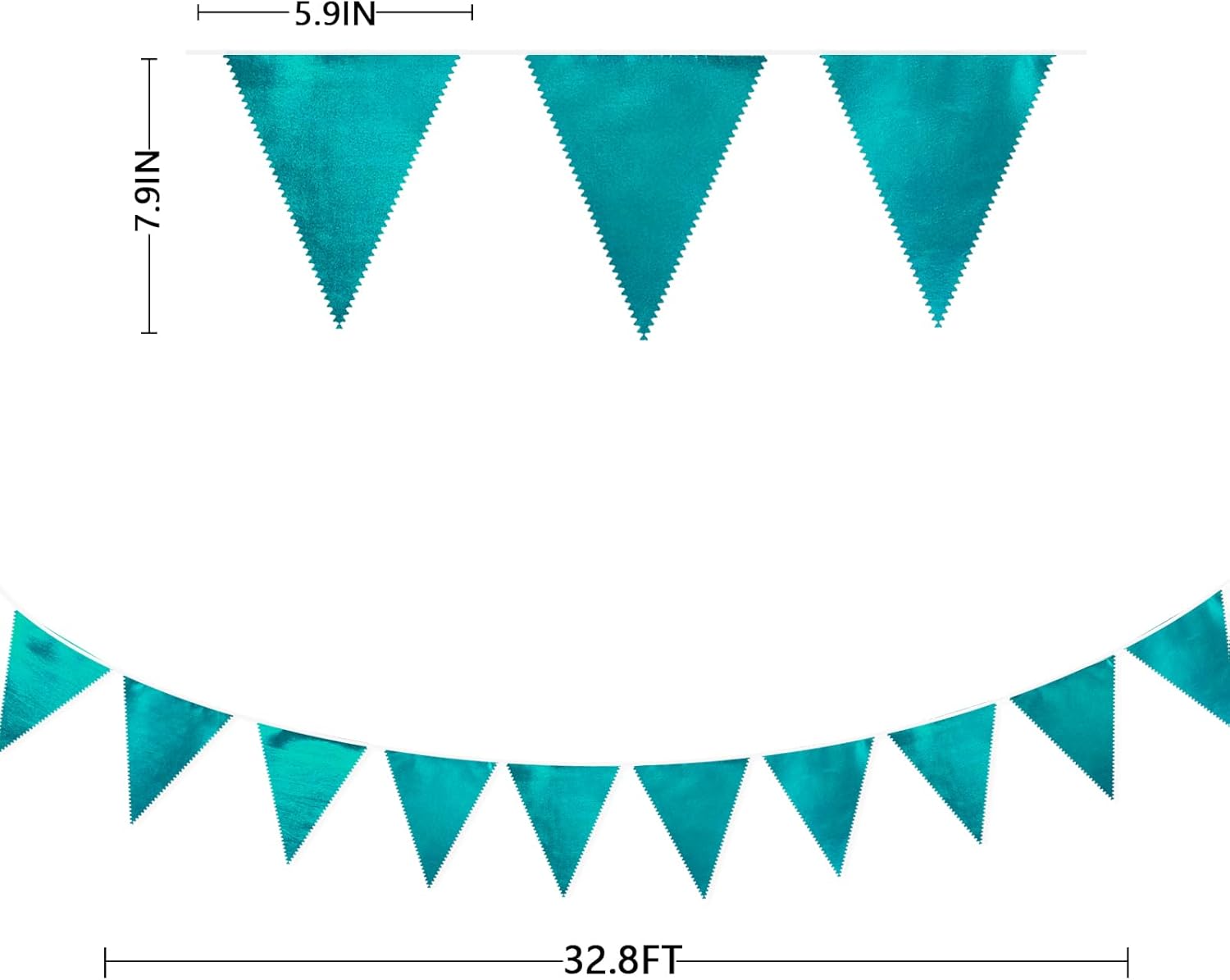 Teal Aqua Blue Triangle Pennant Banner Dark Metallic Fabric Flag Bunting Garland for Birthday Baby Shower Bridal Shower Graduation Wedding Holiday Retirement Mermaid Party Decorations Supplies