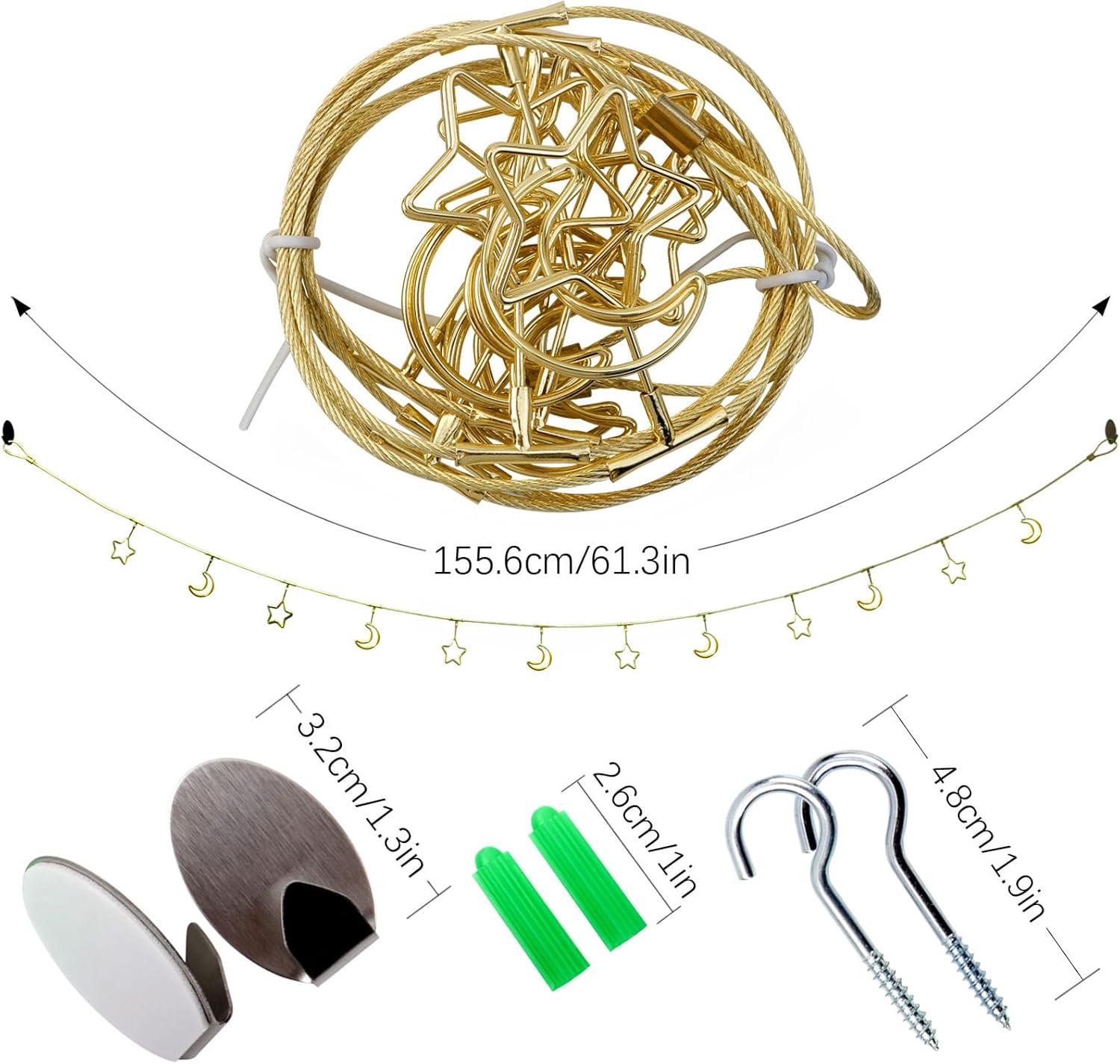 • 【Size】Total hanging photo display string length: 1.55 m/ 5.1 feet.