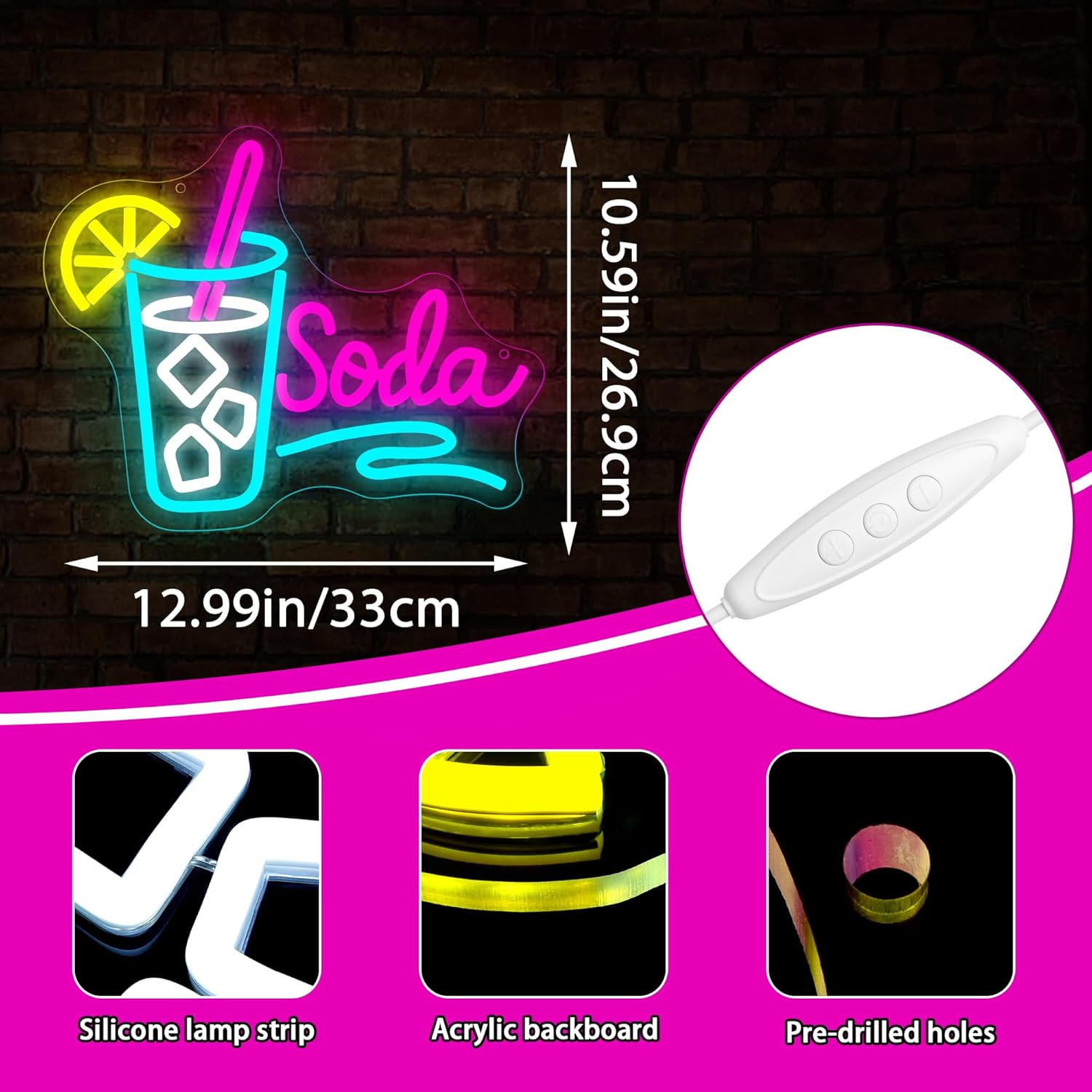 Soda Neon Sign for Wall Decor Dimmable Soda Pop Neon Light for Man Cave LED Light Up Water Sign for Store Bar Beer Club Party Kitchen Restaurant Christmas Birthday Gift Art Size 12.9 * 10.5In(WZCP290)