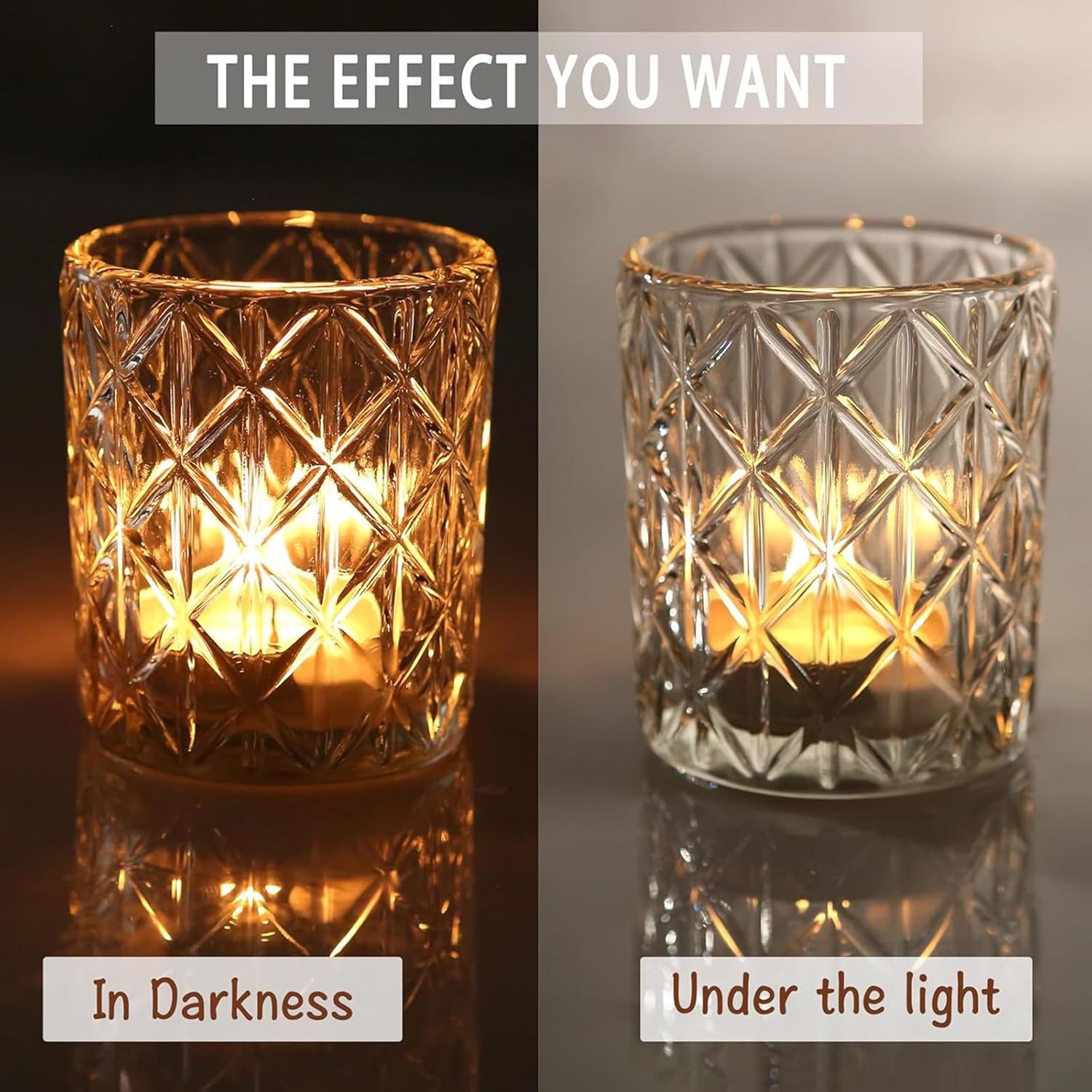 • Simple & Elegant Design : Each candle holder features a simple yet elegant design, adding a touch of sophistication to any space.The brilliant clarity of these candle holders enhances the flickering flame of your tealight candles, creating a mesmerizing display that radiates warmth and tranquility