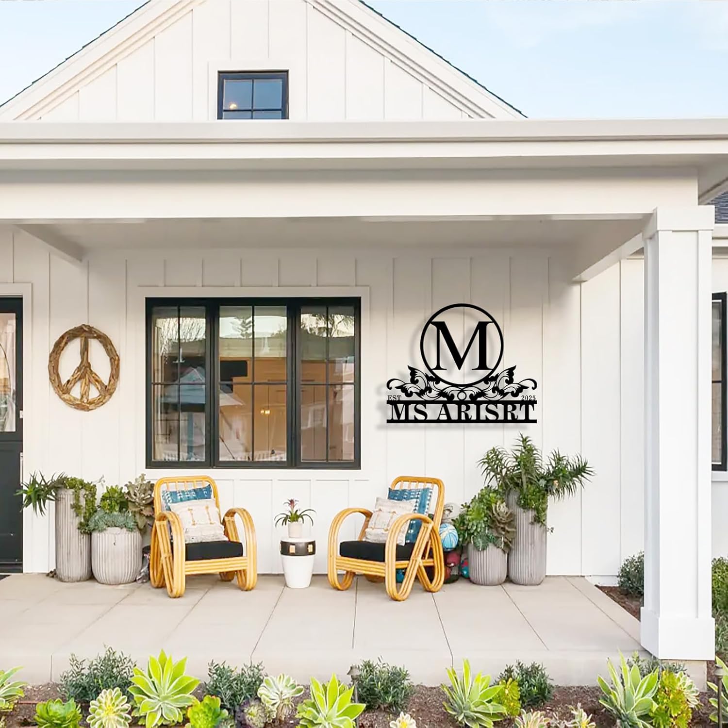 • Personalized Monogram Metal Sign - Choose your letter combination and last name to design your unique custom name sign. Perfect for decorating your entryway, bedroom, living room, front door, porch, patio, or backyard, adding a touch of elegance and personality to any space