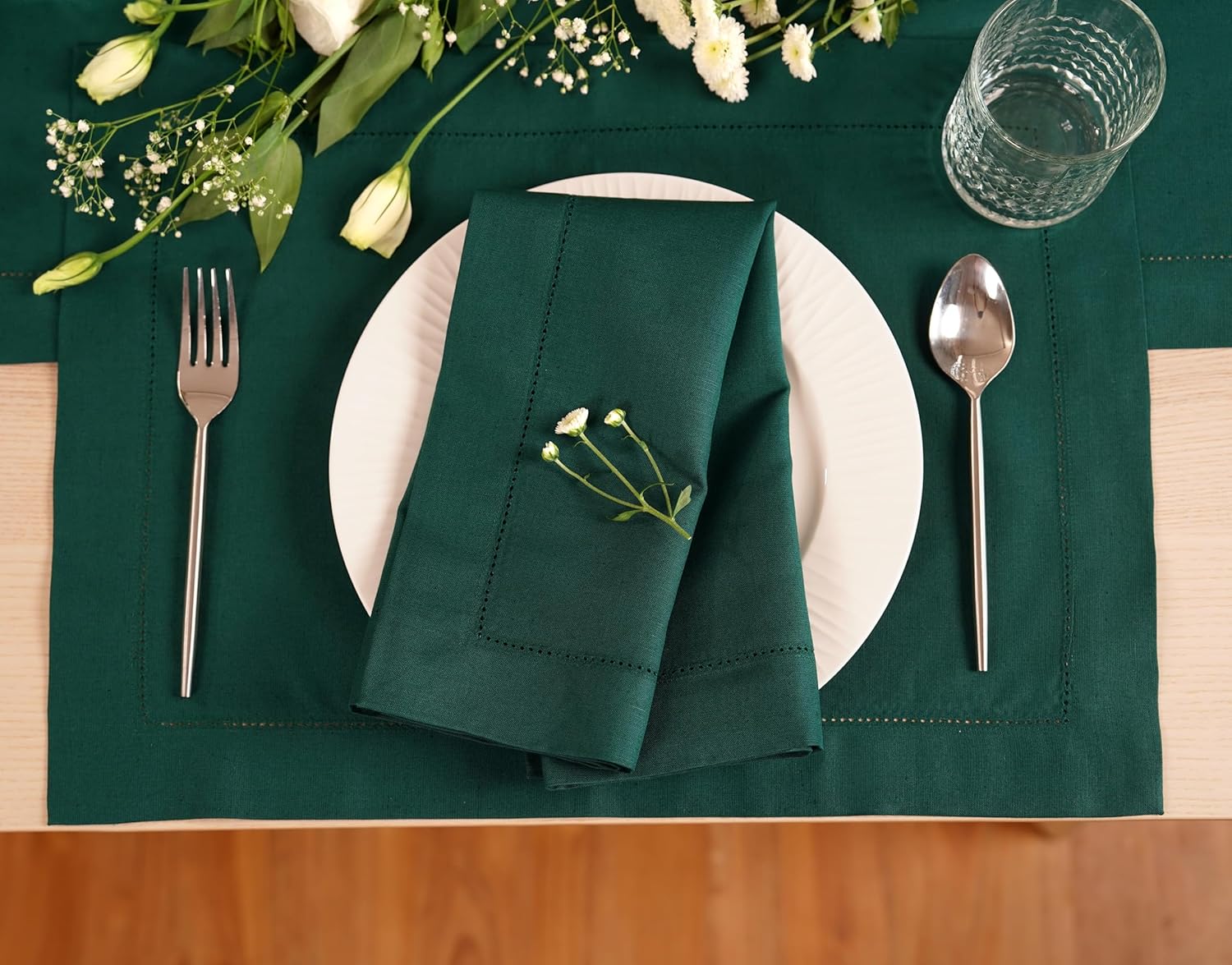 • Hemstitch Placemats: Crafted from premium 100% linen fabric, offering natural elegance and sophistication, showcasing a refined hemstitch design for added charm and durability.