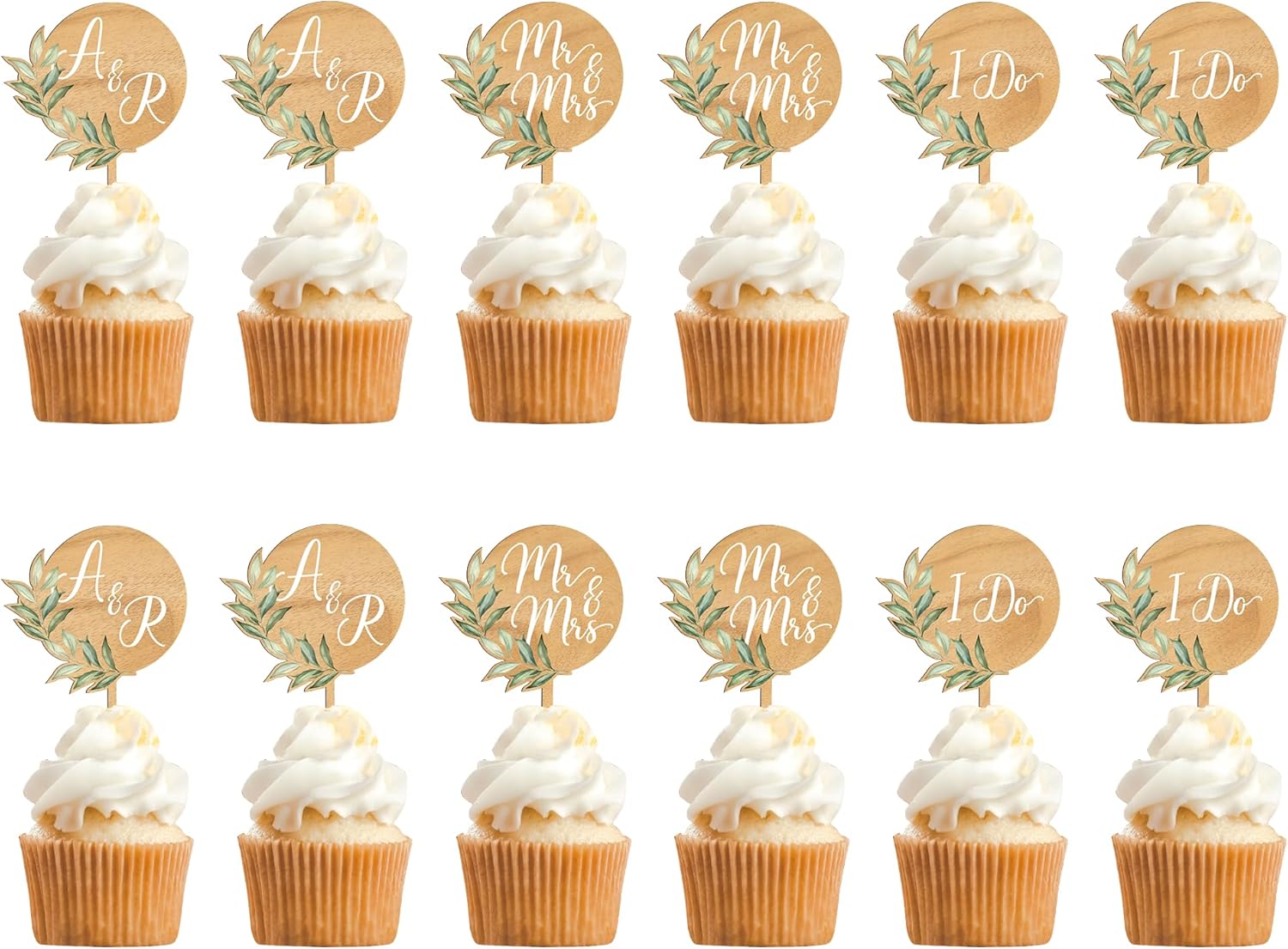 Custom Wedding Cupcake Toppers Personalized Cake Cupcake Decorations in Wood (36 PCS)