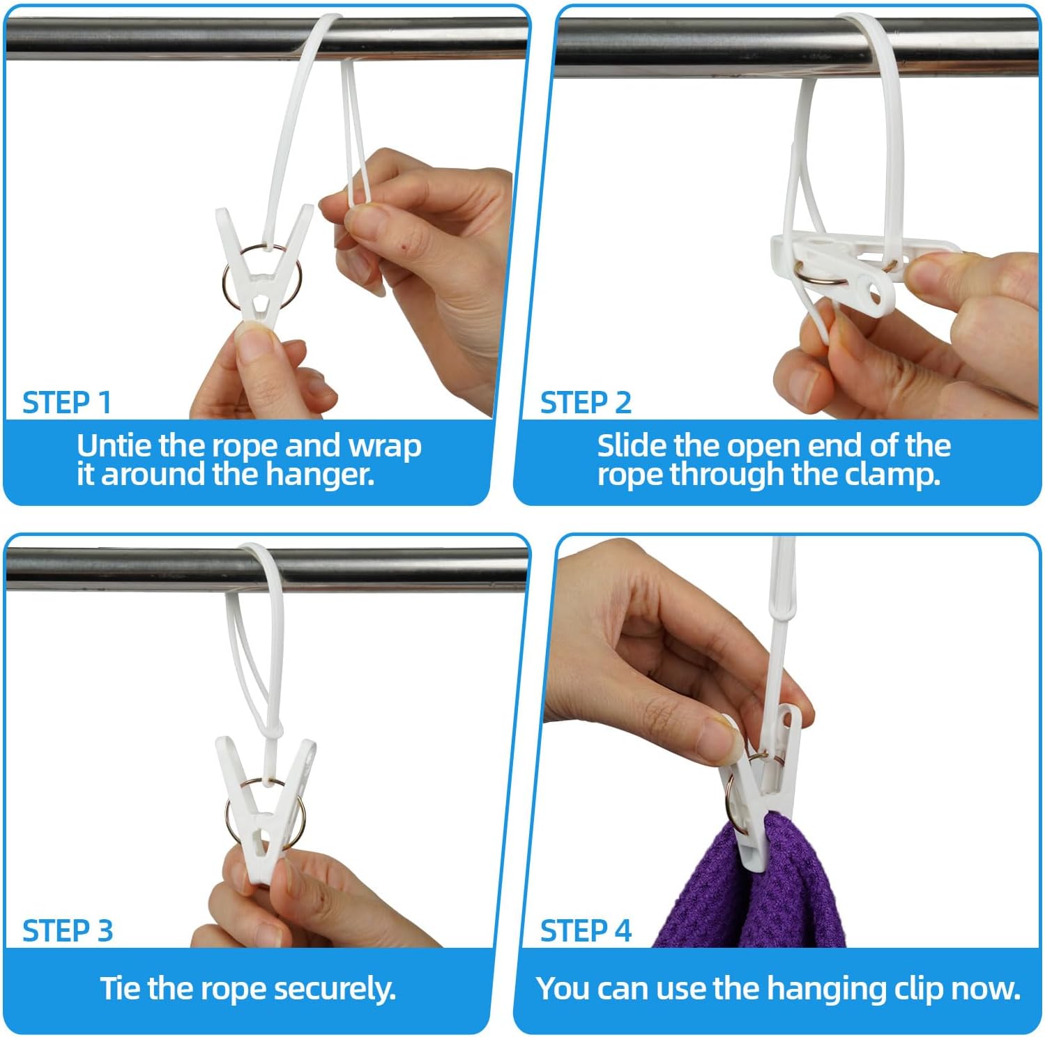• Wide Application:these versatile plastic clothes pins are ideal for hanging laundry, organizing towels, securing kitchen bags, or tidying up garage gear. The clips for hangers are also compact enough to throw in your suitcase—making them great for travel, camping, or days out.