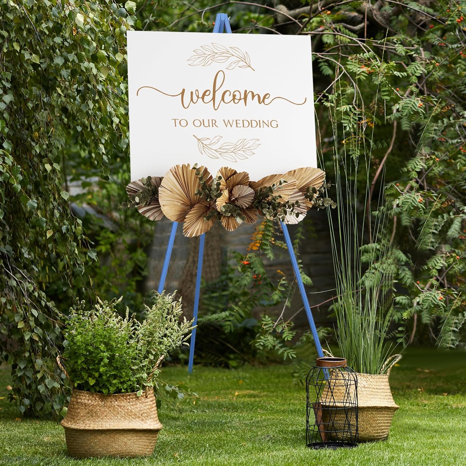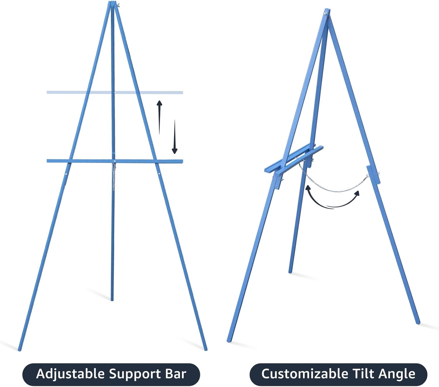 NianFeng Wooden Easel Stand for Sign, Easel Display Stand Floor for Wedding Sign with Adjustable Tray, 63-Inch, Tripod A-Frame Poster Light Duty, Welcome, Art Show & Baby Shower (Blue)