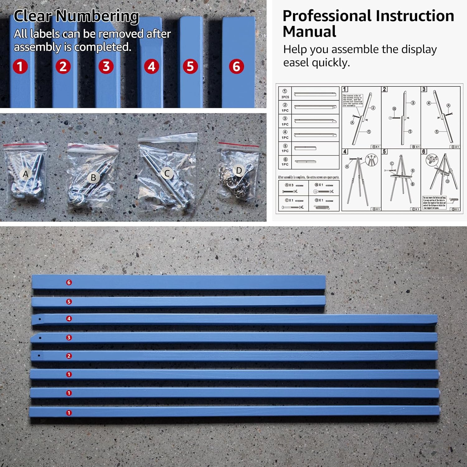 • Easy to Assemble Display Easel: Each wooden component is connected by wing nuts and bolts, allowing assembly without the need for tools. It comes with detailed assembly instructions, and each part is clearly labeled for easy identification and assembly