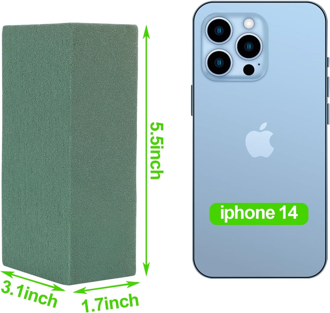 • Package Includes:8 pcs floral foam bricks are included ,each block measures 5.51(L) X 3.11(W) X 1.69(H) inches.